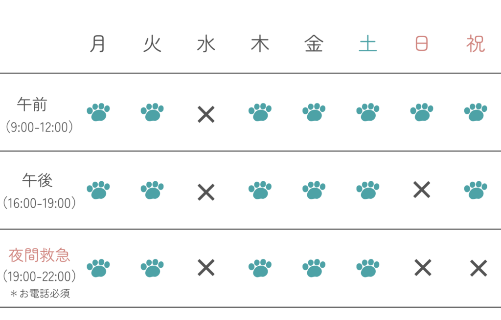 定休日:水曜日全日、日曜日午後夜間、祝日夜間
